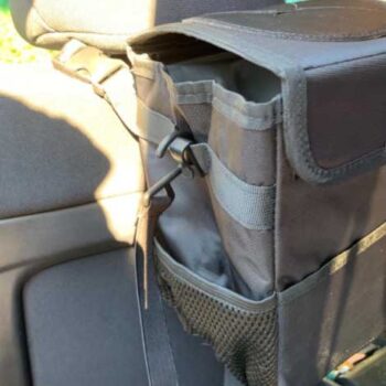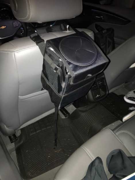 All you have to do is attach the handle buckle over your driver- or front-passenger seat for a handy trash can for your vehicle. Trash now has its own home (and it’s not on the floor or stuffed in a side pocket or cup holder!).
