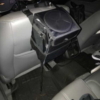 Crafted from quality waterproof oxford cloth, our auto trash can is an absolute handy accessory. Designed with two side pockets, a garbage bag hook, and a velcro closing seal, it’s sturdy and performance-driven to hold up to 1.23 gallons of trash. Plus, a push-seal trash lid helps block any odors from wafting out into the vehicle interior.